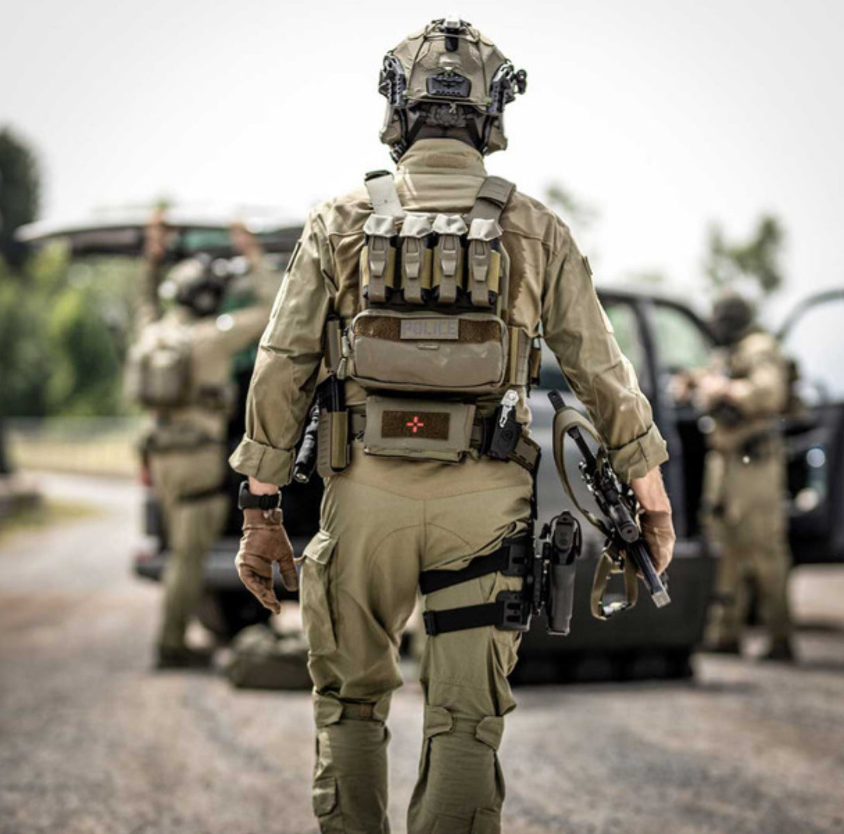 Die Hülle besteht aus robustem CORDURA® 500 den Laminat kombiniert mit einem bi-elastischen Material. Damit ist sie stark abriebfest, wasser- und schmutzabweisend, passt sich aber auch optimal an den Inhalt an und komprimiert das ganze System, sodass nichts verrutscht. Durch rückseitig angebrachte PALS-Schlaufen lässt sich das IFAK sicher an jedem standardisierten MOLLE-System anbringen. Ein rückseitiger 5 cm-Slot ermöglicht alternativ das Anbringen am Gürtel. Damit ist ein fester Sitz gewährleistet und ein Schnellzugriff möglich. Hinter die vordere Flausch-Klettfläche kannst Du die mitgelieferten Reflexfolien schieben, sodass Du die Wahl hast zwischen einer dezenten oder einer auffälligeren Trageweise.